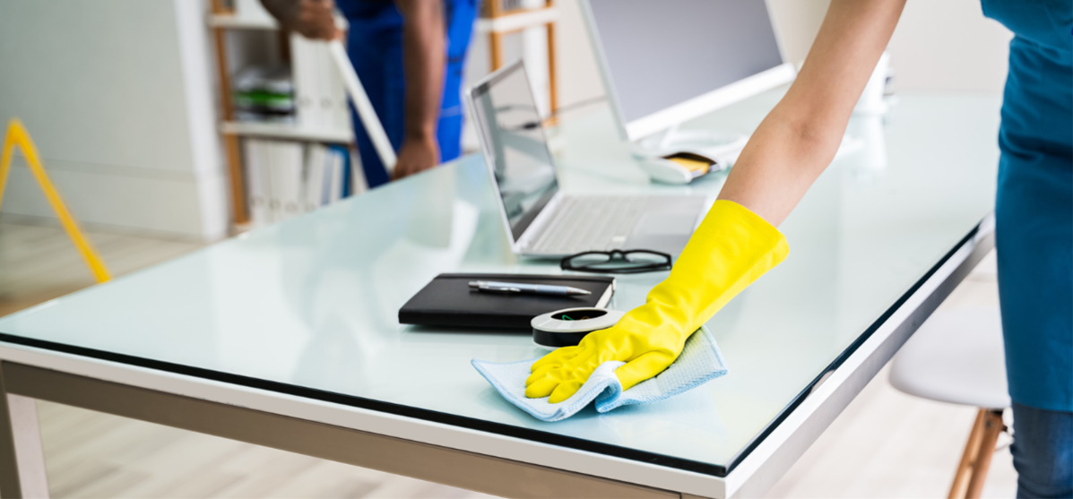 Cleans floors and rooms, including dust mopping, damp mopping, sweeping, vacuuming, dusting, picking up larger objects off the floor, and spot cleaning glass and windows.